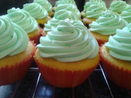 To make frosting, beat your butter well till smooth, slowly add in 1 cup at a time of confectioners sugar and your lemon juice & mountain dew.