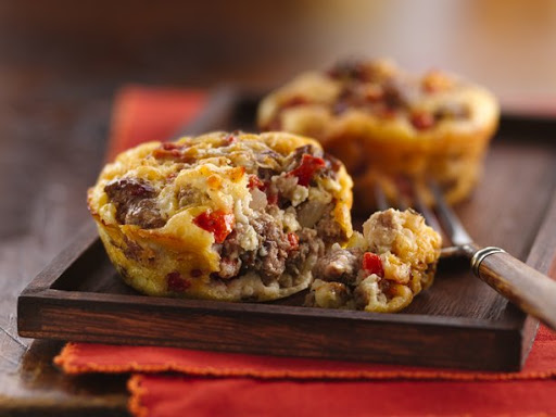 In medium bowl, stir baking mixture ingredients with whisk or fork until blended. Spoon 1 scant tablespoon baking mixture into each muffin cup. Top with about 1/4 cup burger mixture. Spoon 1 tablespoon baking mixture onto burger mixture in each muffin cup.