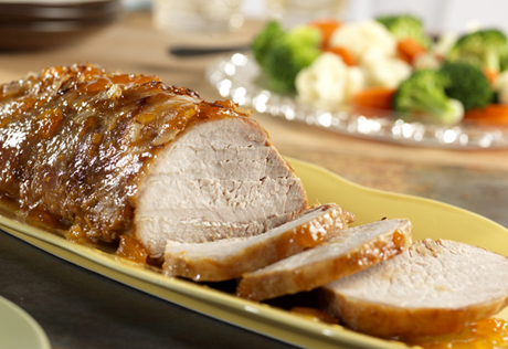 Pork roast slow-cooks to tenderness under a tangy glaze of apricot preserves, mustard, and onion. This is a dish worth waiting for!