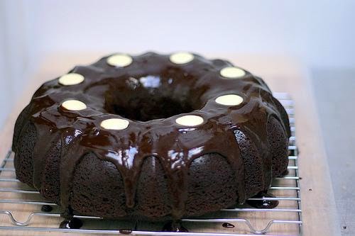 For the ganache, melt the chocolate, heavy cream, and coffee in the top of a double boiler over simmering water until smooth and warm, stirring occasionally. Drizzle over the top of cooled cake.