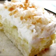 Heat milk and coconut milk over medium-high heat in a small, heavy saucepan to 180 degrees, or until tiny bubbles form around edge (do not boil). Gradually add hot milk mixture to sugar mixture, stirring constantly with a whisk. Place mixture in a pan; cook over medium heat until thick and bubbly ( about 10 minutes) stirring constantly.