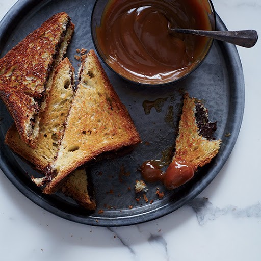 Grilled Chocolate Sandwiches with Caramel Sauce