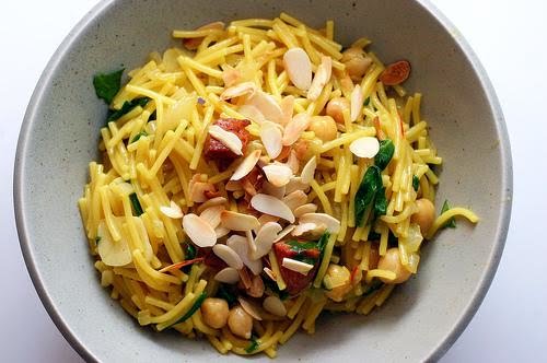 - 12 ounces fideos (dried coiled vermicelli noodles) or angel-hair pasta or thin spaghetti, broken into 2-inch lengths