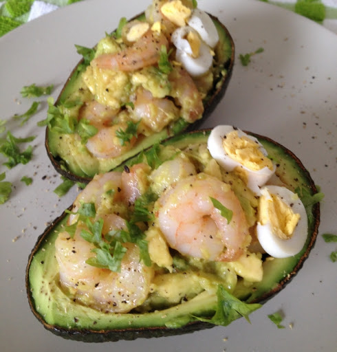 Spoon the mixture into the avocado shells, sprinkle with some freshly ground pepper, and garnish with additional parsley/cilantro if desired.