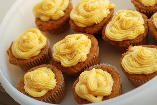 (can of puree of Alphonso mangoes (the sweetest) to make them moist and sweet. The cupcake base is also spiced with cardamom for an Indian twist. For the frosting, I will admit that I cracked and bought some icing sugar (everything else was from our pantry, including the mango puree).