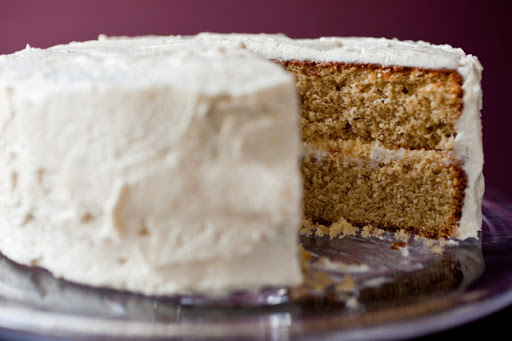 To frost cake, place 1 layer on a cake plate, rounded side down, trimming if necessary so it lies flat. Spread with a third of the frosting, top with second layer and frost remainder of cake.