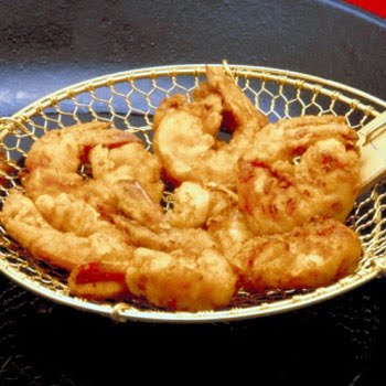 Lightly coat shrimp with seafood breading. Shake off excess and deep-fry shrimp in olive oil with crushed red pepper for approximately 3 minutes.
