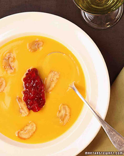 Pumpkin Soup with Cranberry Compote and Roasted Chestnuts