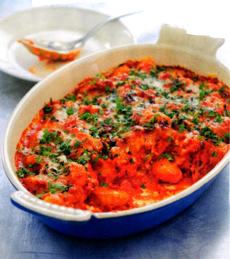 We build deep flavor by cooking the browned gnocchi in a quick tomato sauce enriched with cream.
