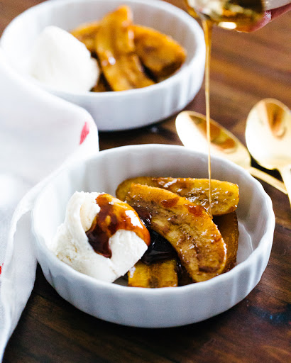 Add the bananas and cook, turning the bananas to evenly coat with the sauce, for about 2 minutes until the bananas are warm.
