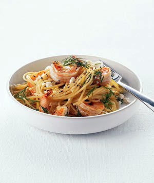 4.Stir in the lemon juice and zest. Add the shrimp, Feta, and dill, the remaining ¼ cup of oil, and ¼ teaspoon each salt and pepper and toss to combine.