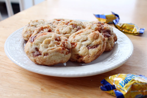 Gradually beat in flour mixture. stir in butterfinger pieces by hand. the dough will be very thick. drop by slightly rounded tablespoonfuls onto ungreased baking sheet.