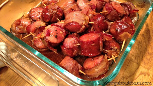 Slow Cooker Glazed Bacon Wrapped Sausage Bites