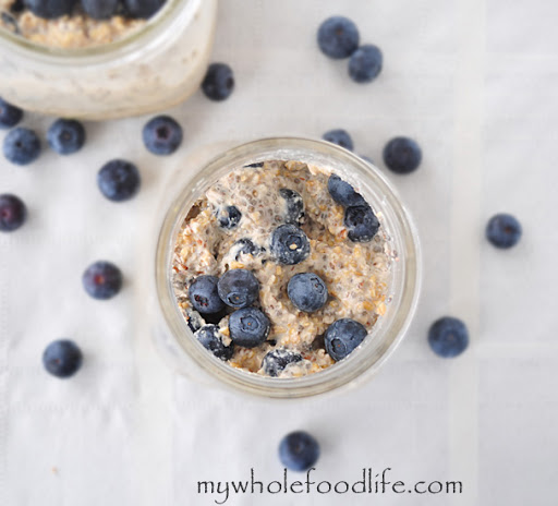 A few things to note. If you are using steel cut oats, they will retain a slight crunch. If you like a smoother oatmeal, try using the rolled oats. I add the fruit in the morning. You could add it the night before, but if you plan on making a weeks worth of breakfasts, add the fruit right before you plan to eat it. I eat mine cold, but feel free to warm yours up in the morning if you wish. This recipe would also work great with strawberries, raspberries or blackberries.