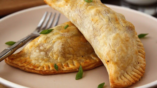Unroll pie crust. Cut 3 (6-inch) rounds from crust. Divide egg scramble mixture equally among crust rounds. Fold crust over on each to make half-circle. Using fork, press edges firmly to seal. Brush tops with beaten egg. Place on cookie sheet.