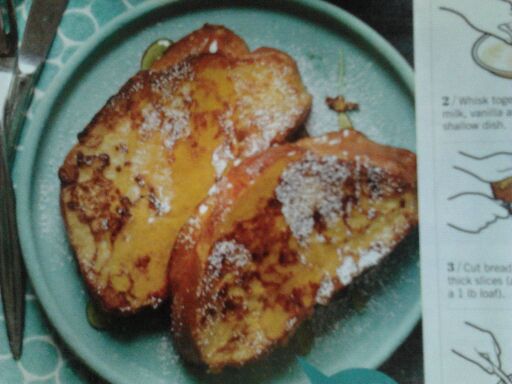 in a shallow dish, whisk eggs,milk,vanilla,salt.