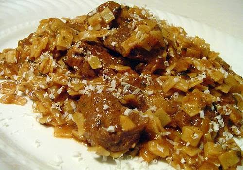 *Heat olive oil in a deep saute pan. Season the beef with salt and pepper and then add to the oil to brown, in batches if necessary. Remove with a slotted spoon.