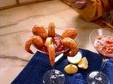 Once shrimp have chilled, arrange with cocktail sauce in a martini glass or as desired.