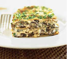 8. Using rubber spatula, evenly distribute 1 cup mushroom sauce in bottom of baking dish; position 3 noodles on top of sauce. Spread 3/4 cup sauce evenly over noodles followed by 2 cups mushroom-onion mixture and 3/4 cup cheese. Repeat layering of noodles, sauce, mushroom-onion mixture, and cheese two more times. Place 3 remaining noodles on top of last layer of cheese. Spread remaining sauce over noodles and sprinkle with remaining cheese. Lightly spray large sheet of foil with nonstick cooking spray and cover lasagna. Bake until bubbling, about 20 minutes.