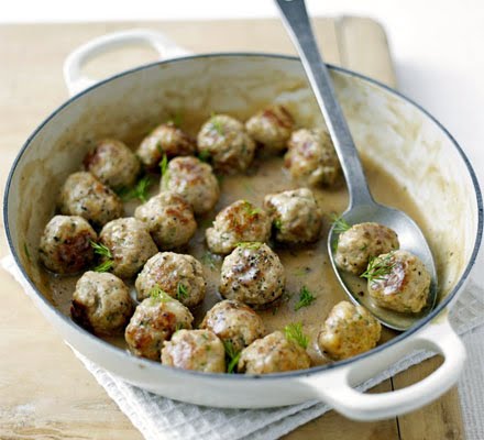 Heat the remaining butter in the saute pan over medium-low heat, or in an electric skillet set to 250 degrees F. Add the meatballs and saute until golden brown on all sides, about 7 to 10 minutes. Remove the meatballs to an ovenproof dish using a slotted spoon and place in the warmed oven.