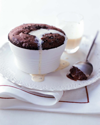 Spoon the mixture into the prepared souffle dishes or coffee mugs, the mixture should come to just below the rim. Bake in a preheated oven at 425 for 8-10 minutes until barely set-the centers should be soft, and wobble when shaken gently. Sprinkle with confectioners' sugar and eat immediately.