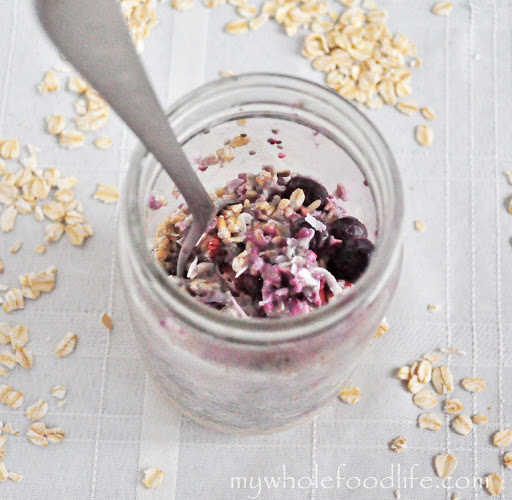 Rinse your groats beforehand. Throw everything in the jar the night before. If you like things a little sweet, you could throw in some chopped dates or raisins.
