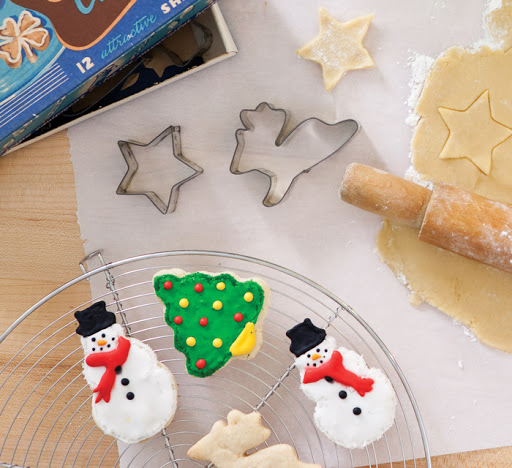 On a lightly floured surface, roll dough to 1⁄4-inch thickness. Using assorted 2-inch cookie cutters, cut as many cookies as possible. Reroll dough scraps no more than twice. Place cookies on prepared baking sheets.