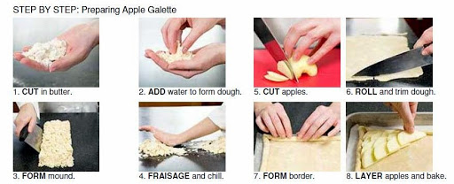 8.LAYER APPLES AND BAKE: Starting in one corner, shingle sliced apples to form even row across bottom of dough, overlapping each slice by about one-half. Continue to layer apples in rows,