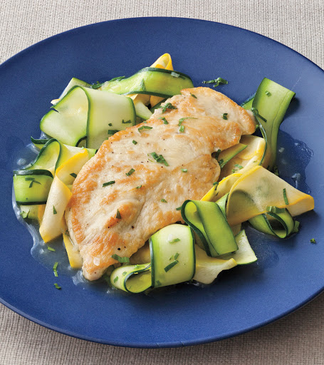 Serving size: 1 chicken breast, 1/2 cup squash ribbons, and 2 tablespoons sauce