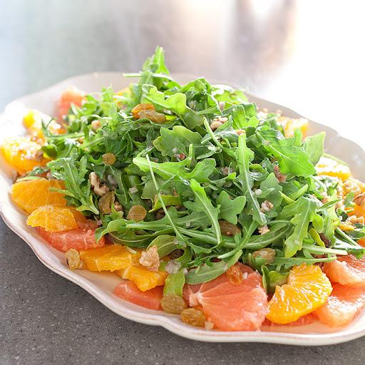 Citrus Salad with Arugula, Golden Raisins, and Walnuts