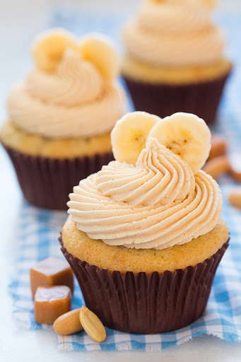 Banana Cupcakes with Salted Caramel Peanut Butter Frosting
