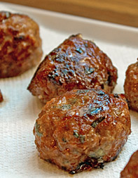 Place the meatballs in the oven and bake until they resist light pressure and are cooked through, about 10 minutes. Transfer to a paper towel to drain and serve hot.