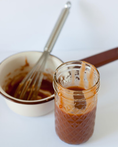 Place the sugar, water, and corn syrup in a small saucepan, stirring to combine. Without stirring, bring to a boil over high heat, swirling the ingredients in the pan occasionally. Continue boiling until the mixture reaches an amber color, About 8-10 minutes. Remove from heat and very carefully (the mixture will quickly expand and sputter) add the cream in a slow steady stream, being sure to stir constantly. Once combined, add the salt and butter and continue stirring until both are completely melted and combined. Cool to room temperature before using.
