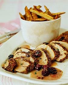 Mustard-Rubbed Pork with Blackberry Mustard Sauce and Spiced Oven Fries