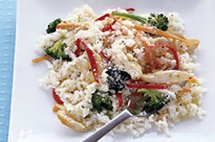 STIR in rice. Return to boil. Reduce heat to low; cover. Simmer 5 min. Remove from heat. Let stand 5 min. Stir in lemon pepper seasoning; sprinkle with cheese.
