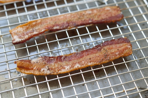 •For peppered bacon, grind fresh black pepper (we prefer a course grind) all over the bacon slices before baking.
