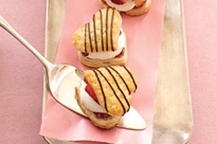 Preheat oven to 400°F. Roll out pastry on lightly floured surface to 10-inch square. Cut into 16 heart shapes with 2-inch cookie cutter. Place on ungreased baking sheet.