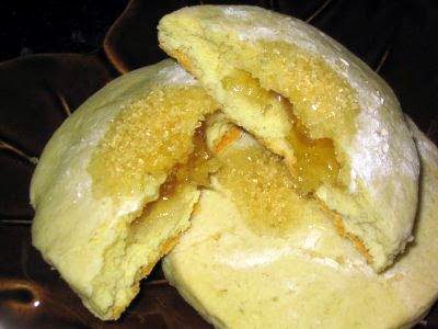On a floured surface roll the cookie dough thin. Cut with a 2 or 3 inch round cutter. Place on cookie sheet. Drop a teaspoon of pineapple preserves in the middle. Place another cookie round on top and seal the edges.