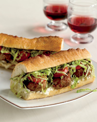 Place 3 pork patties on the bottom of each baguette and top with the lettuce, tomato and a few splashes of hot sauce. Close the sandwiches and serve.