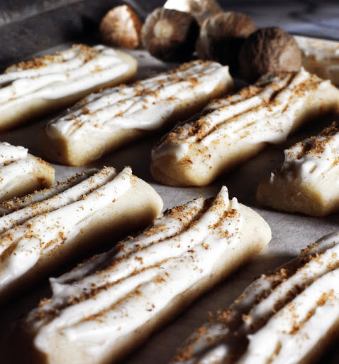 Before the frosting sets, grate fresh nutmeg over each cookie. Store the cookies in an airtight container. The cookies can be made up to 2 months in advance (unfrozen and frosted); thaw before frosting.