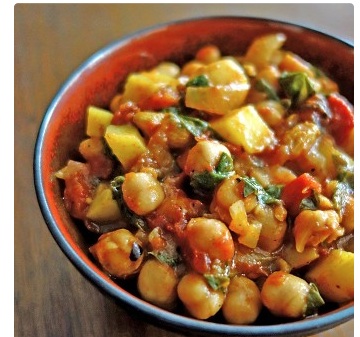 In a large saucepan over medium-high heat, heat the oil. Add the onion, garlic, cumin and coriander and cook until onion is golden brown, about 4 to 5 minutes. Stir in the sweet paprika, saffron, broth, potatoes, chickpeas and tomatoes. Bring the stew to a boil then reduce to low. Cover and simmer until the potato is cooked through, about 10 minutes. Add the chopped spinach and raisins and cook until the spinach is wilted and the raisins have plumped, about 3 minutes. Season with salt and pepper.