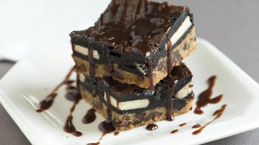 Triple Decker Brownies with Bourbon Chocolate Sauce 1 Picture