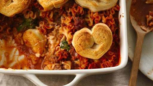 Crescent Heart-Topped Lasagna Casserole