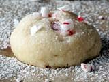 Add 1/2 cup of the remaining powdered sugar to a small bowl. While the cookies are still warm, roll them in the sugar. Sprinkle with crushed peppermint candies and serve.