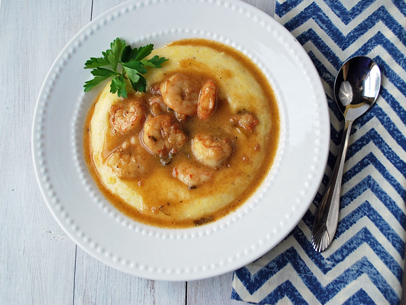 Barbecue Shrimp Over Aged Cheddar Polenta