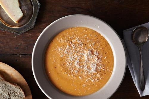 Serve the soup with a hit of black pepper and a pinch of Parmesan on top.