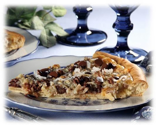 Press rolls into a ball. Roll into a 13-inch circle and place on a 12-inch sprayed pizza pan. Turn up the edges of the dough to form a ridge. Bake at 400°F for 5 minutes. Layer pre-baked crust with chocolate chips, coconut, pecans and condensed milk. Bake at 350°F for 20 minutes.
