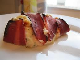 Line baking sheet with foil. Place chicken breasts on the pan. Sprinkle Ranch Dressing over chicken, seasoning to taste. Place raw strip of bacon over each breast. Lightly cover with foil. Bake in 350ºF oven for 40 minutes or until juices run clear. Remove foil and add slice of cheese to each breast. Bake another 10 minutes.