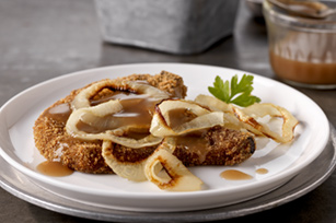 BAKE 30 min. Top with gravy; cover. Bake 15 min. or until chops are done (160ºF).