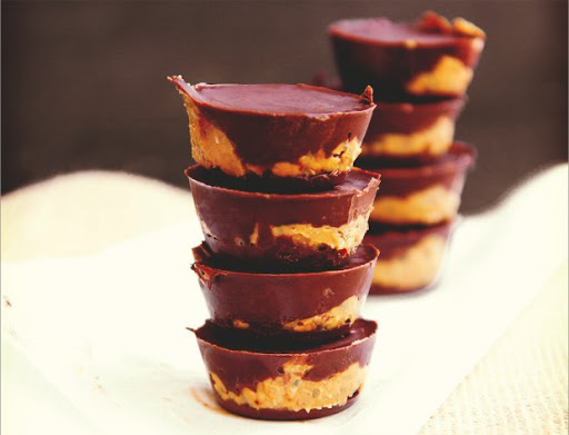 Top each cup with the remaining chocolate until the peanut butter is covered.